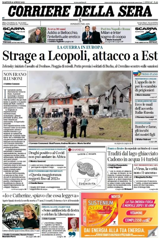 "Milan e Inter, sogno di coppa". Questo il titolo del Corriere della Sera nel taglio alto della prima pagina nell'edizione odierna. Nerazzurri e rossoneri si affrontano per la quarta volta in stagione: in palio c'è la finale della competizione. Inzaghi carica i suoi: "Non li abbiamo ancora battuti". Pioli invece toglie pressione al Diavolo: "Pensiamo solamente a questo trofeo".