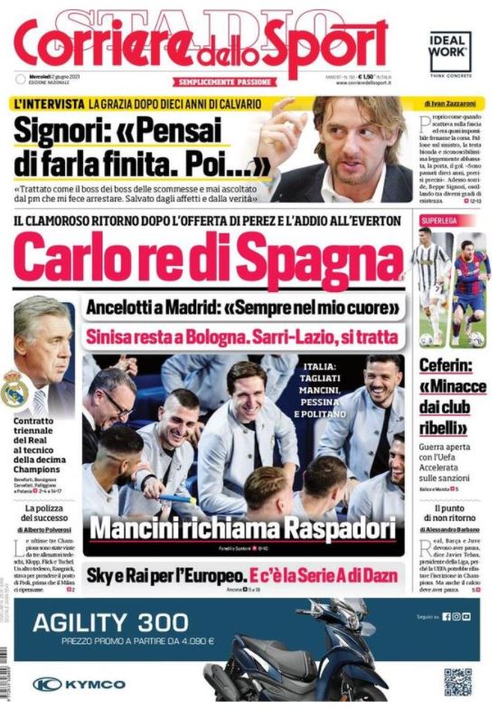 L'edizione odierna del Corriere dello Sport apre stamattina in prima pagina che le parole di Ceferin: "Minacce dai club ribelli". Continua la guerra tra l'UEFA e Juventus, Real Madrid e Barcellona dopo il caso Superlega. Sono attese a breve intanto le prime sanzioni nei confronti di queste tre società.
