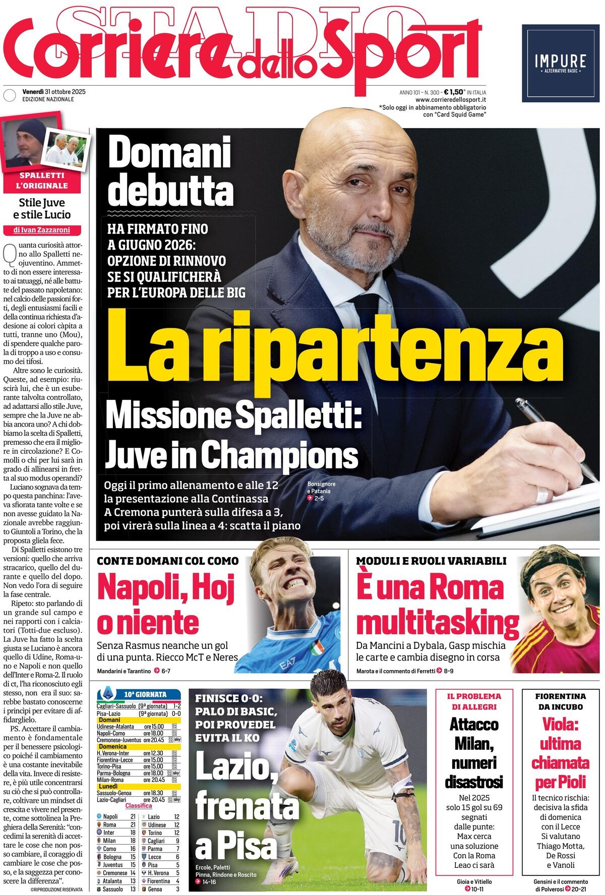 Il Corriere dello Sport in edicola questa mattina titola così in prima pagina: "Attacco Milan, numeri disastrosi". Il quotidiano riporta un dato piuttosto sorprendente sul reparto offensivo milanista: nel 2025, solo 15 gol su 69 sono stati segnati dalle prime punte. Il problema è evidente anche in questa stagione visto che Santiago Gimenez ha segnato finora un solo gol in Coppa Italia, mentre in campionato è ancora a secco dopo nove giornate.