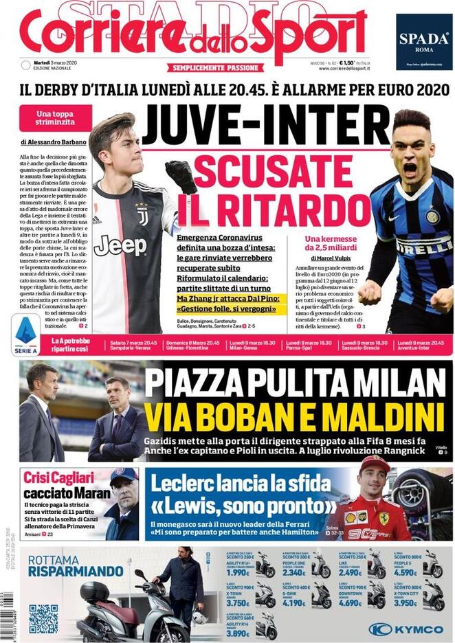 Il CorSport in prima pagina: "Piazza pulita Milan: via Boban e Maldini"