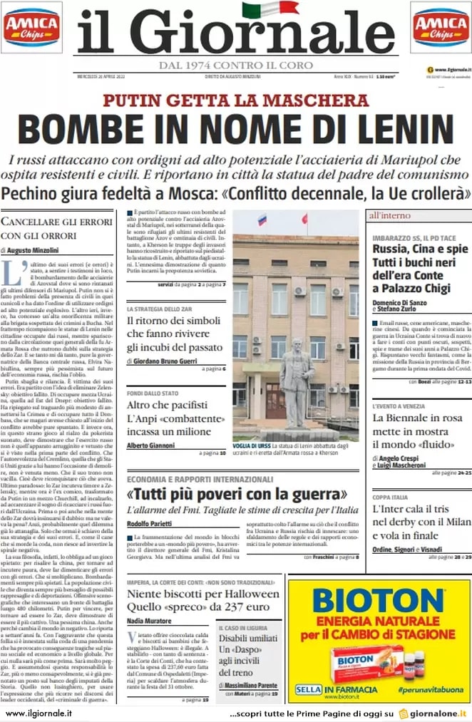 "L'Inter cala il tris nel derby con il Milan e vola in finale" scrive Il Giornale in prima pagina quest'oggi. Spazio dedicato al derby della Madonnina di Coppa Italia con il successo per 3-0 della formazione guidata da Simone Inzaghi. Decisiva la doppietta di Lautaro Martinez e il gol di Robin Gosens. Proteste di Pioli per il gol annullato a Bennacer sul 2-0.