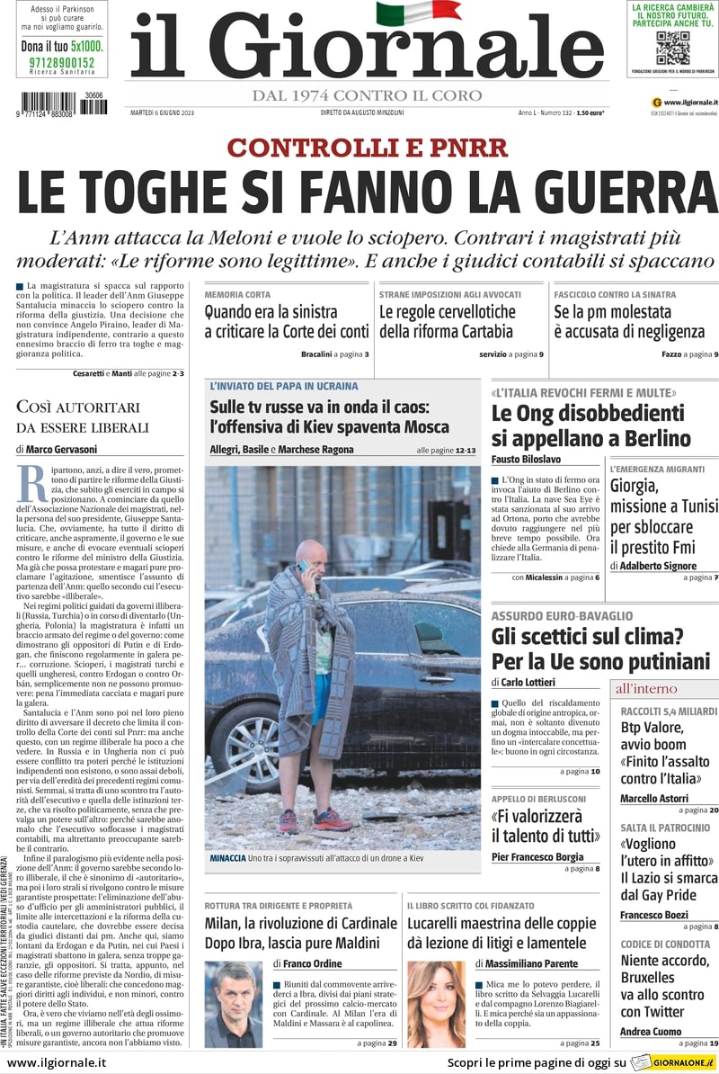"Milan, la rivoluzione di Cardinale. Dopo Ibra lascia pure Maldini" scrive Il Giornale sulla sua prima pagina odierna. Riuniti dal commovente addio al calcio di Zlatan Ibrahimovic, divisi dai piani strategici del prossimo calciomercato con Cardinale. Al Milan l'era di Maldini e Massara sembra essere giunta ormai al capolinea.