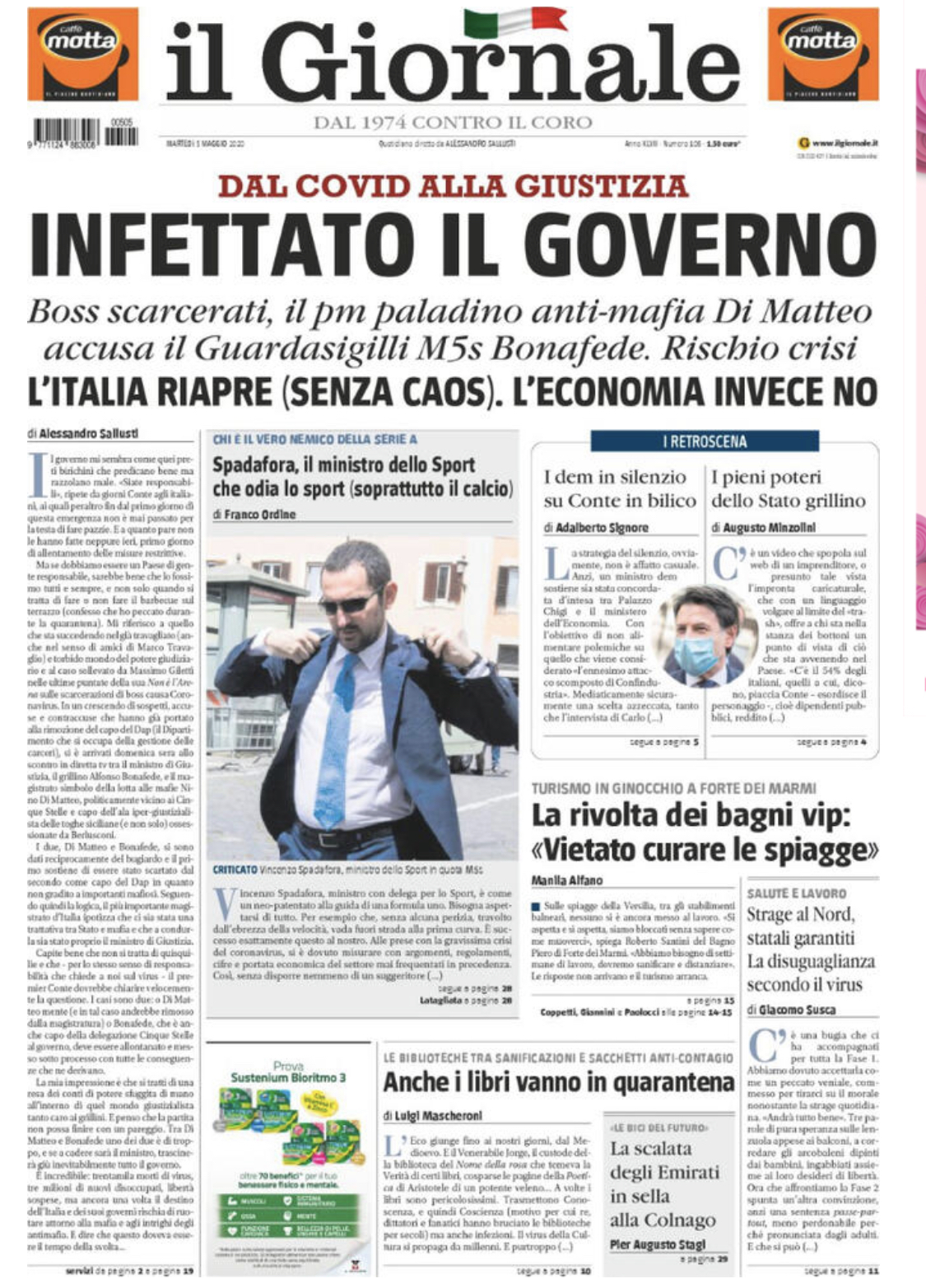 "Spadafora, il ministro dello Sport che odia lo sport (soprattutto il calcio)". Questo il titolo sulla prima pagina del quotidiano il Giornale in edicola stamani in riferimento alle dichiarazioni rilasciate in questi giorni dal ministro dello Sport. Spadafora, dunque, viene visto come un nemico della Serie A da cui bisogna aspettarsi di tutto.