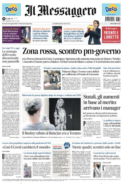 Si parla anche di calcio sulla prima pagina dell’edizione odierna del quotidiano Il Messaggero, in vista della ripartenza della Serie fissata per il prossimo fine settimana. Questo il titolo che il noto giornale romano riporta in taglio alto: "Partite in diretta e gol in chiaro: verso l’accordo ministero-Sky".