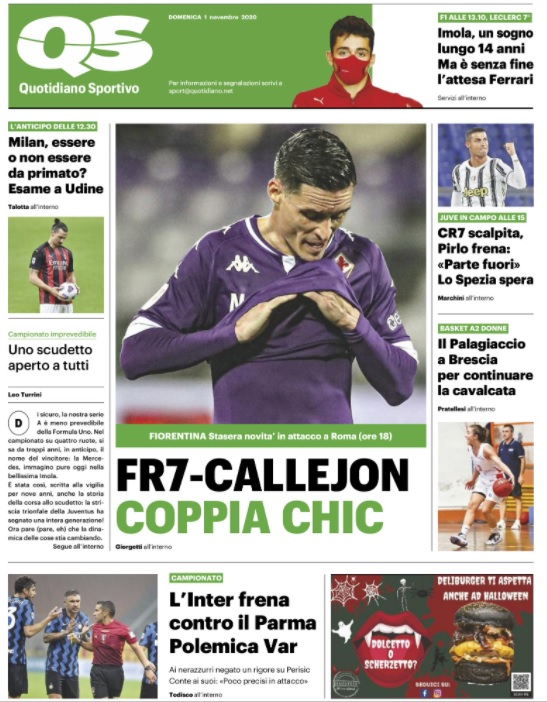 Il Milan scenderà in campo alla "Dacia Arena" contro l’Udinese nel lunch match della sesta giornata del campionato di Serie A. "Essere o non essere da primato? Esame a Udine", titola in prima pagina il QS, evidenziando così l’importanza di questa partita per la squadra di Stefano Pioli.