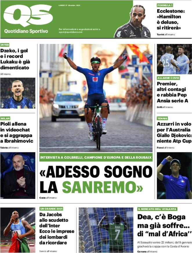 Il Quotidiano Sportivo titola così questa mattina sul Milan: "Pioli allena in videochat e si aggrappa a Ibrahimovic". Dopo qualche giorno di riposo per il Natale, oggi e domani i rossoneri avranno due sessioni di allenamento collettivo su Zoom. La ripresa de lavori a Milanello sarà il 30 dicembre, quando ci dovrebbe essere regolarmente anche Zlatan Ibrahimovic, che sta smaltendo il problema al ginocchio che non gli ha permesso di scendere in campo contro l'Empoli.