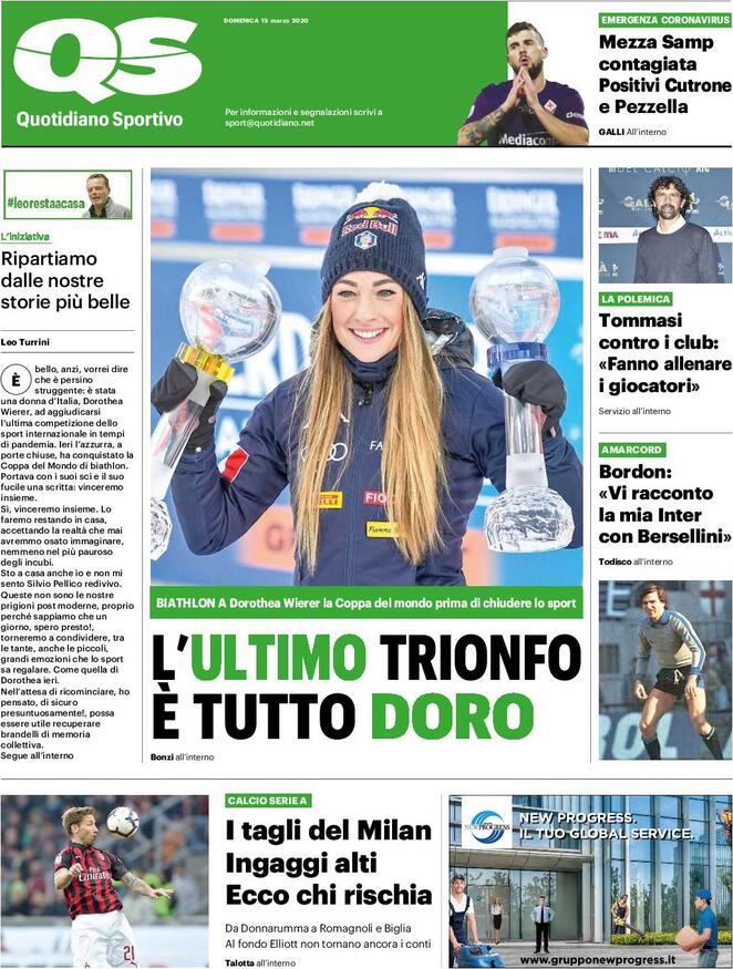 Il QS in edicola questa mattina dedica spazio in prima pagina alle vicende del club rossonero. "I tagli del Milan. Ingaggi alti, ecco chi rischia", titola il Quotidiano Sportivo, che poi aggiunge, sempre in taglio basso: "Da Donnarumma a Romagnoli e Biglia: al fondo Elliott non tornano ancora i conti".