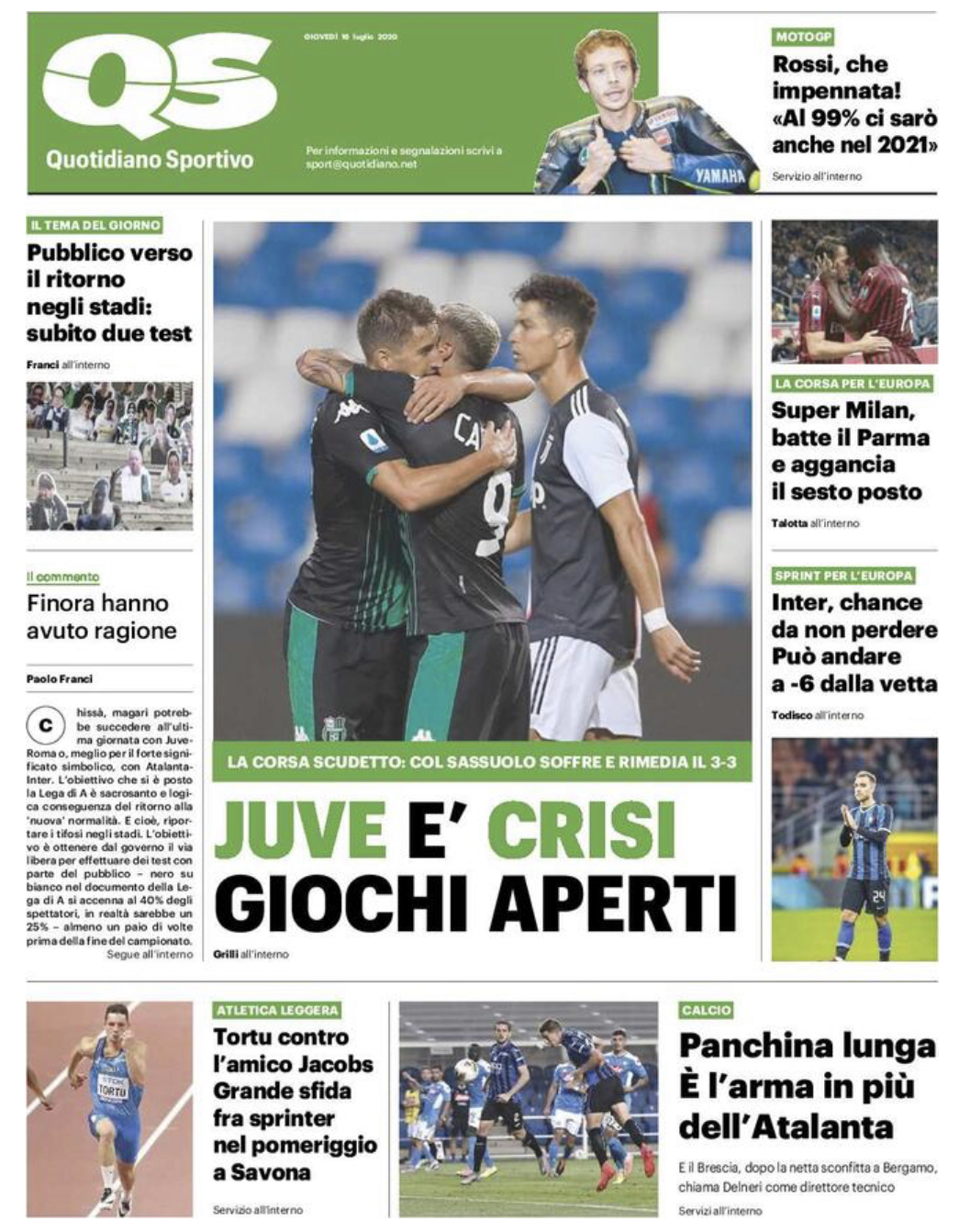 "Super Milan, batte il Parma e aggancia il sesto posto". È il titolo che l’edizione odierna del QS dedica in prima pagina - per la precisione di spalla - ai rossoneri dopo la bella vittoria di ieri. La "corsa per l’Europa" si fa sempre più intensa: ora la squadra di Pioli è al sesto posto in classifica.
