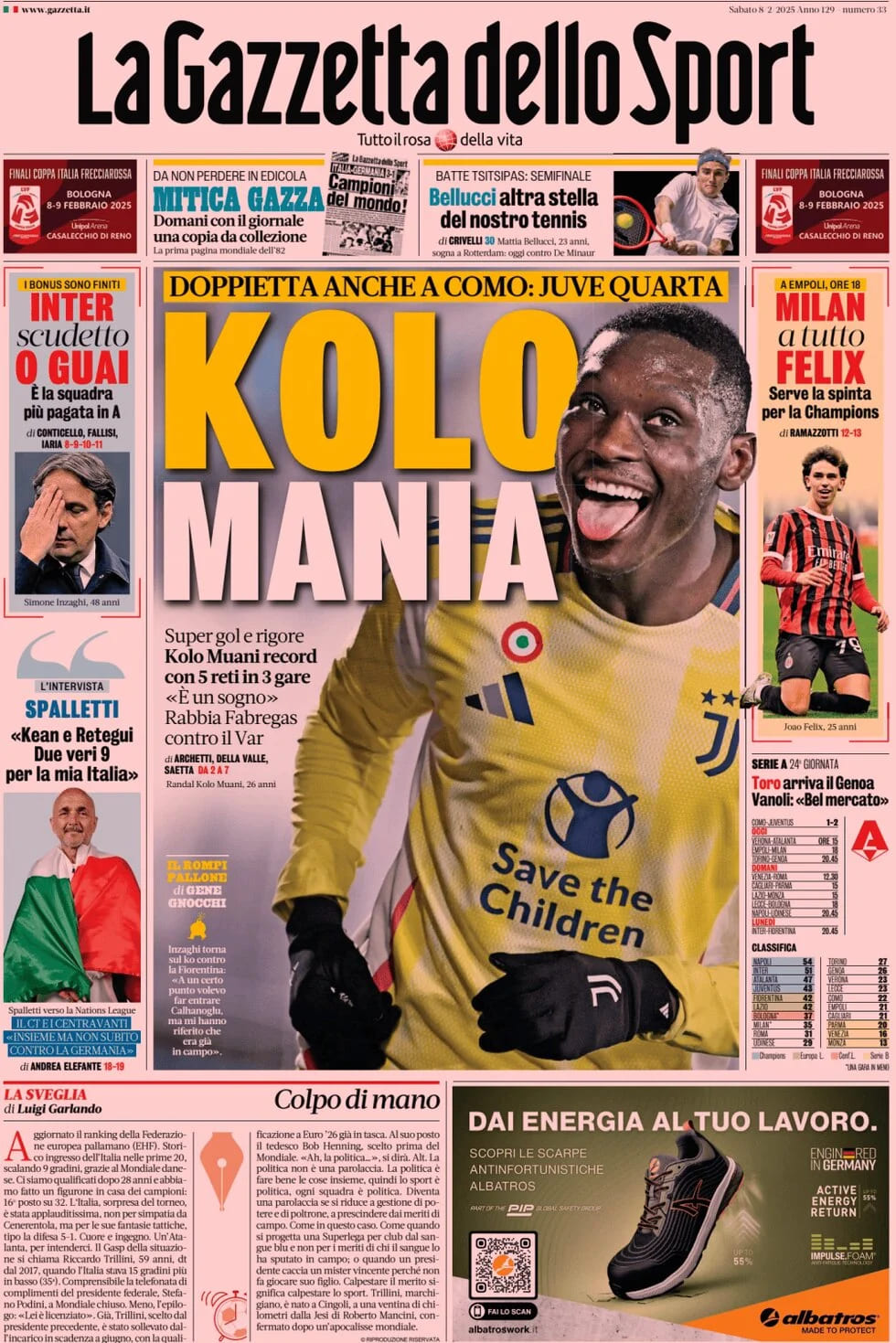 L'edizione odierna della Gazzetta dello Sport titola così stamattina in prima pagina: "Milan a tutto Felix. Serve la spinta per la Champions". Dopo la rete all'esordio in Coppa Italia contro la Roma, stasera alle 18 in casa dell'Empoli il portoghese, arrivato in rossonero in prestito secco dal Chelsea durante il mercato invernale, farà il suo debutto da titolare con la maglia del Diavolo. Contro i toscani, la squadra di Conceiçao deve vincere a tutti i costi per risalire la classifica e non perdere ulteriore terreno dal quarto posto.