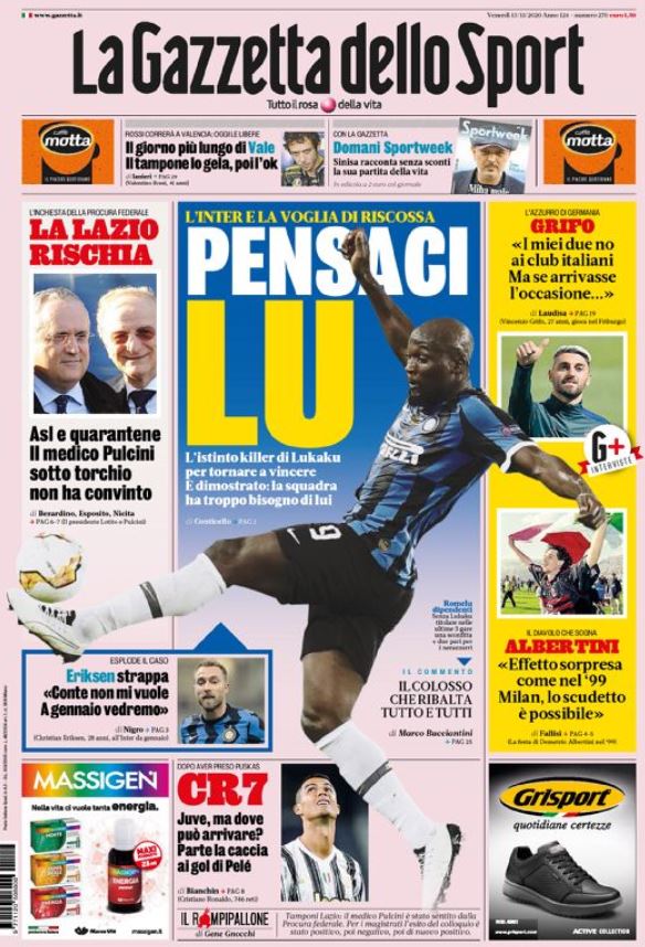 L'edizione odierne dalla Gazzetta dello Sport, nel taglio laterale della prima pagina, dedica uno spazio all'ex rossonero Demetrio Albertini: "Effetto sorpresa come nel '99. Milan, lo scudetto è possibile". Il Diavolo sogna e anche l'ex centrocampista ci crede ed incoraggia il club che lo ha visto a lungo protagonista in passato.