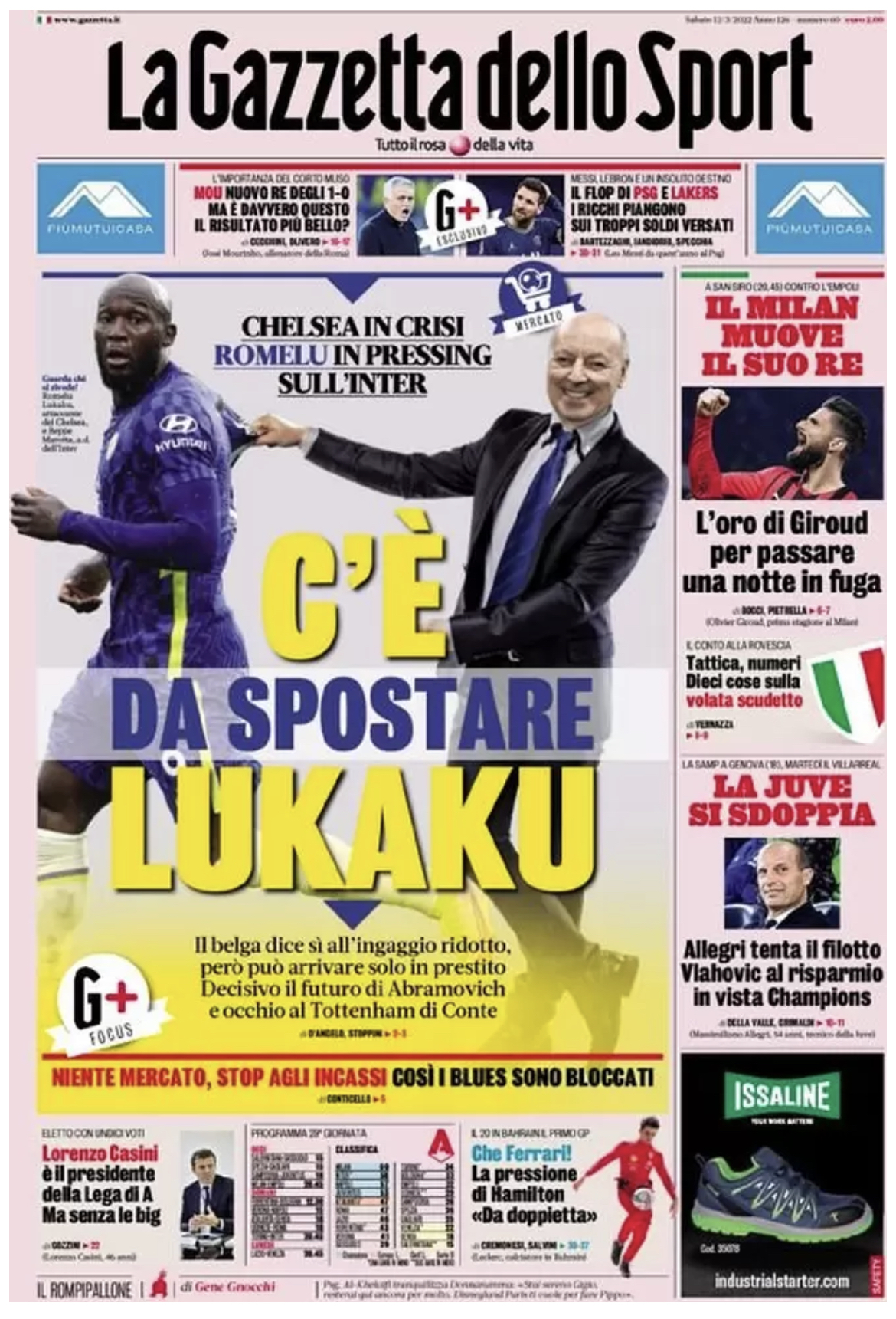 La Gazzetta dello Sport in edicola questa mattina dedica spazio in prima pagina ai rossoneri di Pioli, impegnato stasera a San Siro contro l’Empoli. “Il Milan muove il suo re”, titola la rosea, che poi aggiunge in taglio laterale: “L’oro di Giroud per passare una notte in fuga”.