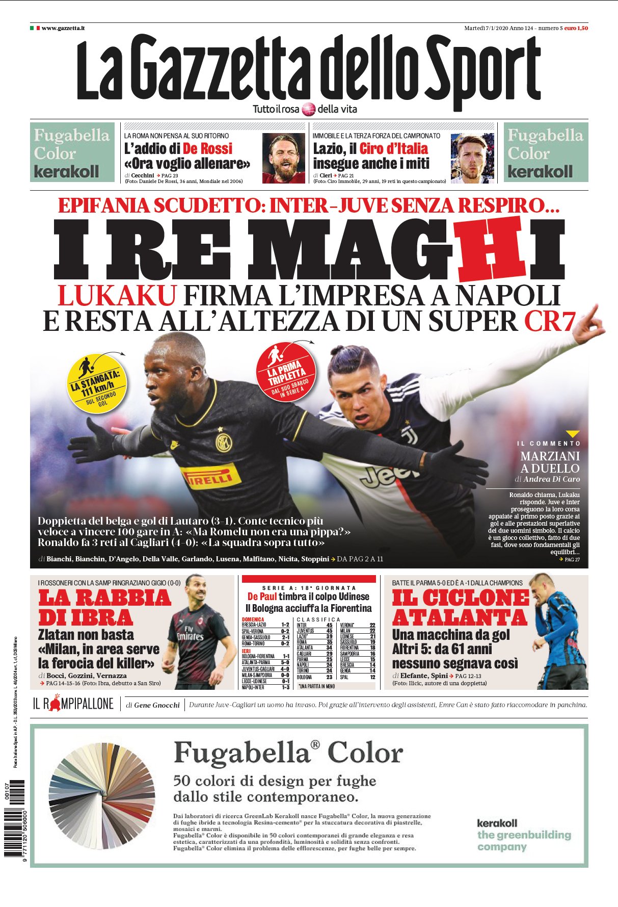 La Gazzetta in apertura: "La rabbia di Ibra. Zlatan non basta ai rossoneri"