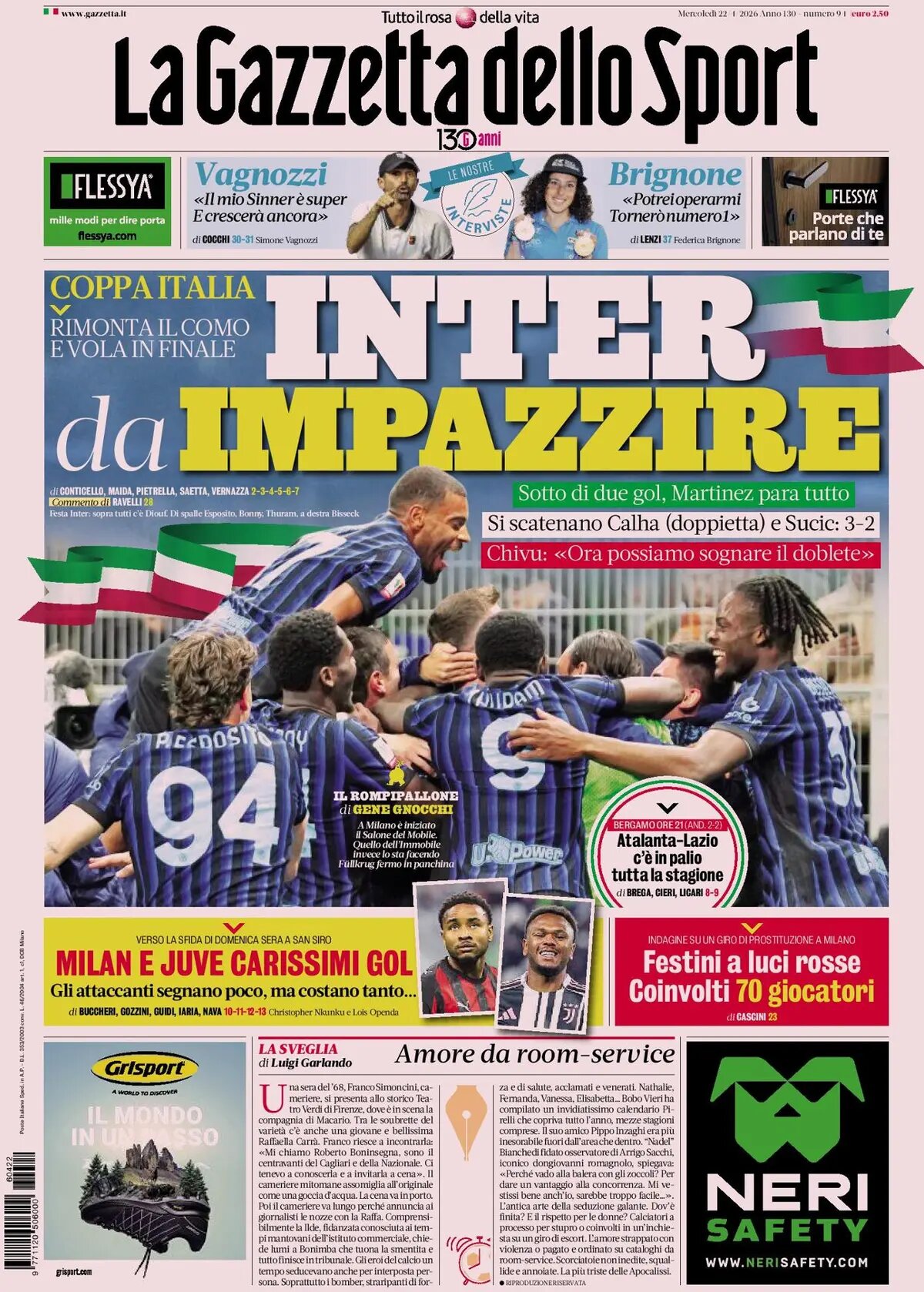 La Gazzetta in apertura: "Milan e Juventus, carissimi gol"