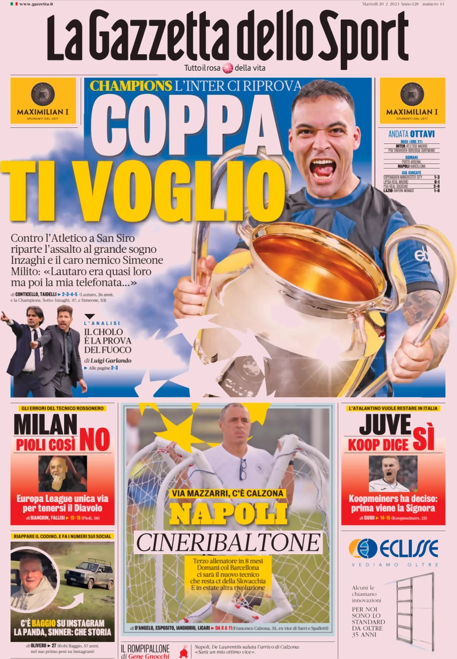 L'edizione odierna della Gazzetta dello Sport titola così questa mattina in prima pagina sul Milan: "Pioli, così no". Il pesante tondo in casa del Monza ha lasciato il segno in casa rossonera. In particolare, il tecnico milanista è tornato al centro delle critiche per l’esagerato turnover e i soliti problemi difensivi della sua squadra.