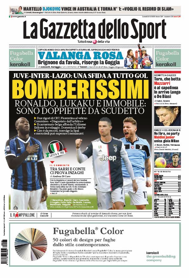 "No Ibra, no party. Maldini junior unica gioia rossonera" scrive La Gazzetta dello Sport nella sua prima pagina odierna. Solo 1-1 per i rossoneri in casa contro l'Hellas Verona in 10. Ibra non convocato per influenza ma anche per un affaticamento al polpaccio, il Milan non vince ma si coccola Daniel Maldini, ieri all'esordio.