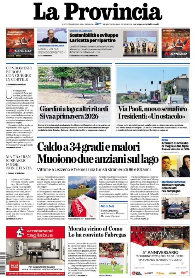 Il titolo, presente in taglio basso nella prima pagina di oggi del quotidiano, è il seguente: "Morata vicino al Como: lo ha convinto Fabregas". Reduce da una stagione divisa tra Milan e Galatasaray, lo spagnolo vorrebbe tornare in Italia per rilanciarsi. Una chance gli arriva dal connazionale Fabregas, che vorrebbe farne la stella del suo Como.