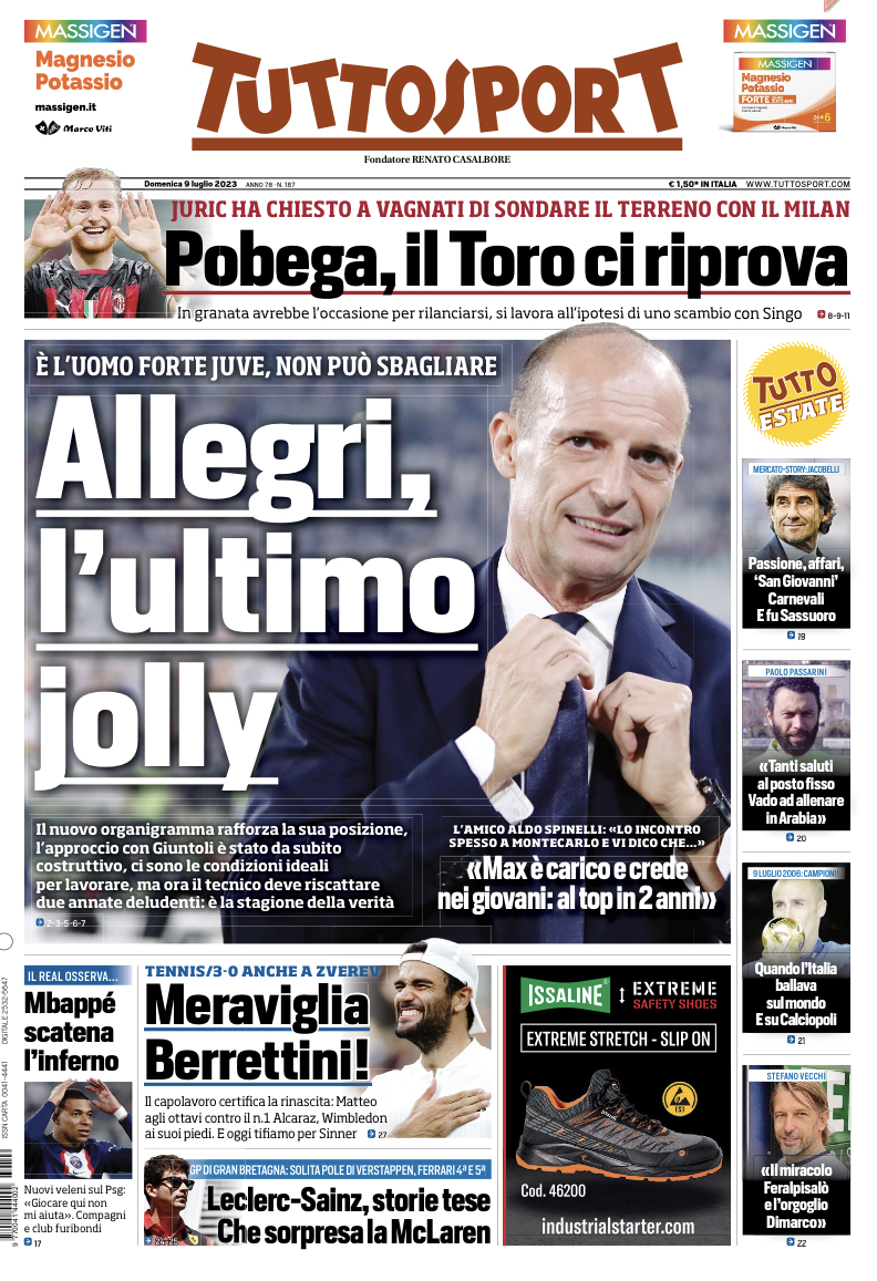 Oggi tutti e tre i principali quotidiani sportivi italiani parlano del mercato rossonero in prima pagina: chi del mercato in entrata (con nuovi nomi), chi di quello in uscita. La Gazzetta dello Sport rilancia il nome di Mehdi Taremi come alternativa concreta per l'attacco rossonero: "Milan, opzione Taremi", si legge sulla rosea. Le quotiazioni dell'iraniano starebbero salendo dalle parti di via Aldo Rossi. Sempre di attacco si parla sul Corriere dello Sport che propone un nome mai fatto fino a questo momento: "Il Milan si lancia sul baby Emegha"; si tratta di un classe 2004 olandese che quest'anno, allo Sturm Graz in Austria, ha segnato 10 gol. E' un pallino di Moncada. Infine Tuttosport parla del mercato in uscita e dell'asse Milano-Torino: "Pobega, il Toro ci riprova". Secondo le indiscrezioni Juric vorrebbe riportare il centrocampista rossonero all'ombra della Mola, sponda granata. In quest'ottica potrebbe anche profilarsi uno scambio con Singo che, invece piace al Milan: nel mirino del Torino anche Messias.