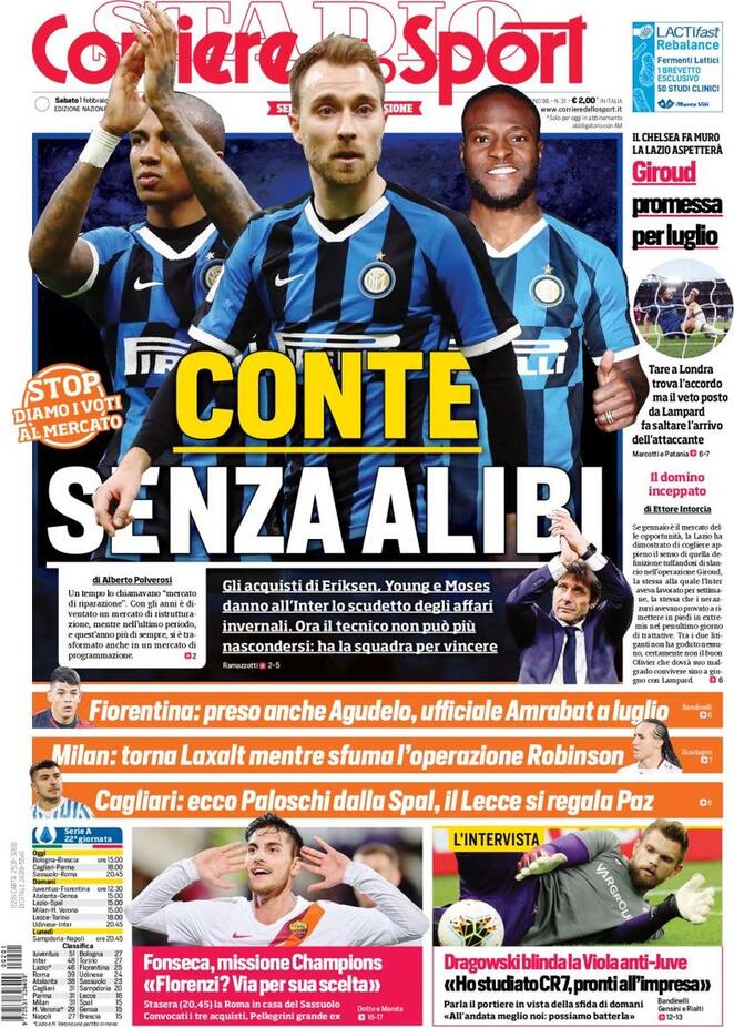 Si parla anche di Milan sulla prima pagina dell’edizione odierna del Corriere dello Sport. "Torna Laxalt mentre sfuma l’operazione Robinson", titola il noto quotidiano sportivo della Capitale, soffermandosi sul mancato arrivo del terzino statunitense, che aveva già sostenuto le visite mediche in Italia. Sfumato l’affare col Wigan, i rossoneri hanno deciso di riportare a casa il terzino uruguaiano.