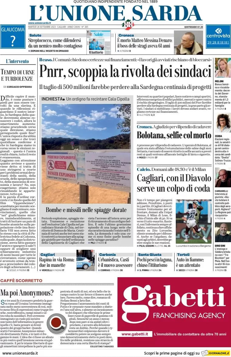 Milan in Sardegna, L'Unione Sarda titola: "Cagliari, con il Diavolo serve un colpo di coda"