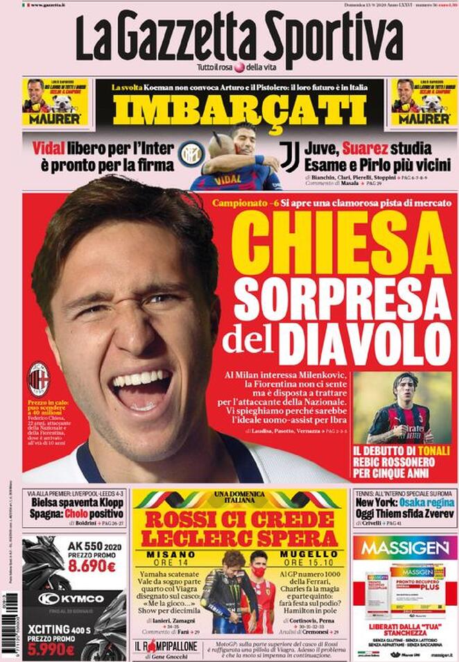 La Gazzetta dello Sport in edicola questa mattina dedica ampio spazio in prima pagina al mercato dei rossoneri. "Chiesa sorpresa del Diavolo", titola la rosea, che poi aggiunge: "Si apre una clamorosa pista di mercato. Al Milan interessa Milenkovic, la Fiorentina non ci sente ma è disposta a trattare per l’attaccante della Nazionale".