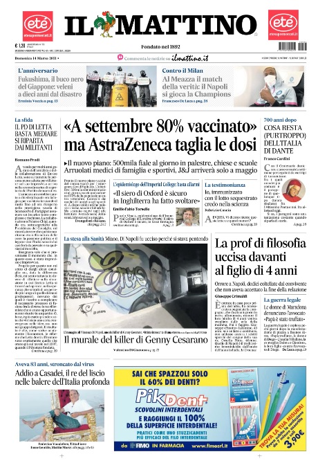 C’è spazio anche per il calcio sulla prima pagina dell’edizione odierna del quotidiano Il Mattino, che pone l’accento sulla supersfida in programma a San Siro. "Al Meazza il match della verità: il Napoli si gioca la Champions", titola il giornale partenopeo, evidenziando così l’importanza della partita di questa sera per la squadra di Gattuso.