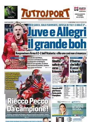 La Gazzetta dello Sport questa mattina mette il focus su Stefano Pioli e titola così: "Pioli sorpassa e rilancia, mi tengo il Milan". Nel sottotitolo viene aggiunto: "Gol di Pulisic, Empoli battuto e secondo posto". Poi viene riportata una frase del tecnico, a mo' di risposta alle parole di fiducia di Ibra: "Voglio restare in rossonero il più possibile". Il Corriere dello Sport si concentra più sul pari tra Juve e Atalanta che ha consegnato la seconda piazza al Diavolo e scrive: "Il Milan soffia il secondo posto alla Juve. Pulisic spinge Pioli contro l'Empoli". Quindi Tuttosport che sempre a margine della partita della Juve, scrive su Allegri: "Scavalcato dal Milan". Il QS, infine, titola: "Pulisic piega l'Empoli. Sorpasso Pioli: è secondo".