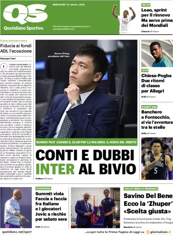 "Leao, sprint per il rinnovo. Ma serve prima dei Mondiali": titola così questa mattina il Quotidiano Sportivo in merito alla questione del prolungamento di contratto del portoghese. Il club di via Aldo Rossi vuole arrivare ad un accordo prima del Mondiale e per questo ieri ha incontrato l'avvocato del giocatore, ma serviranno nuovi vertici per arrivare ad un accordo definitivo.
