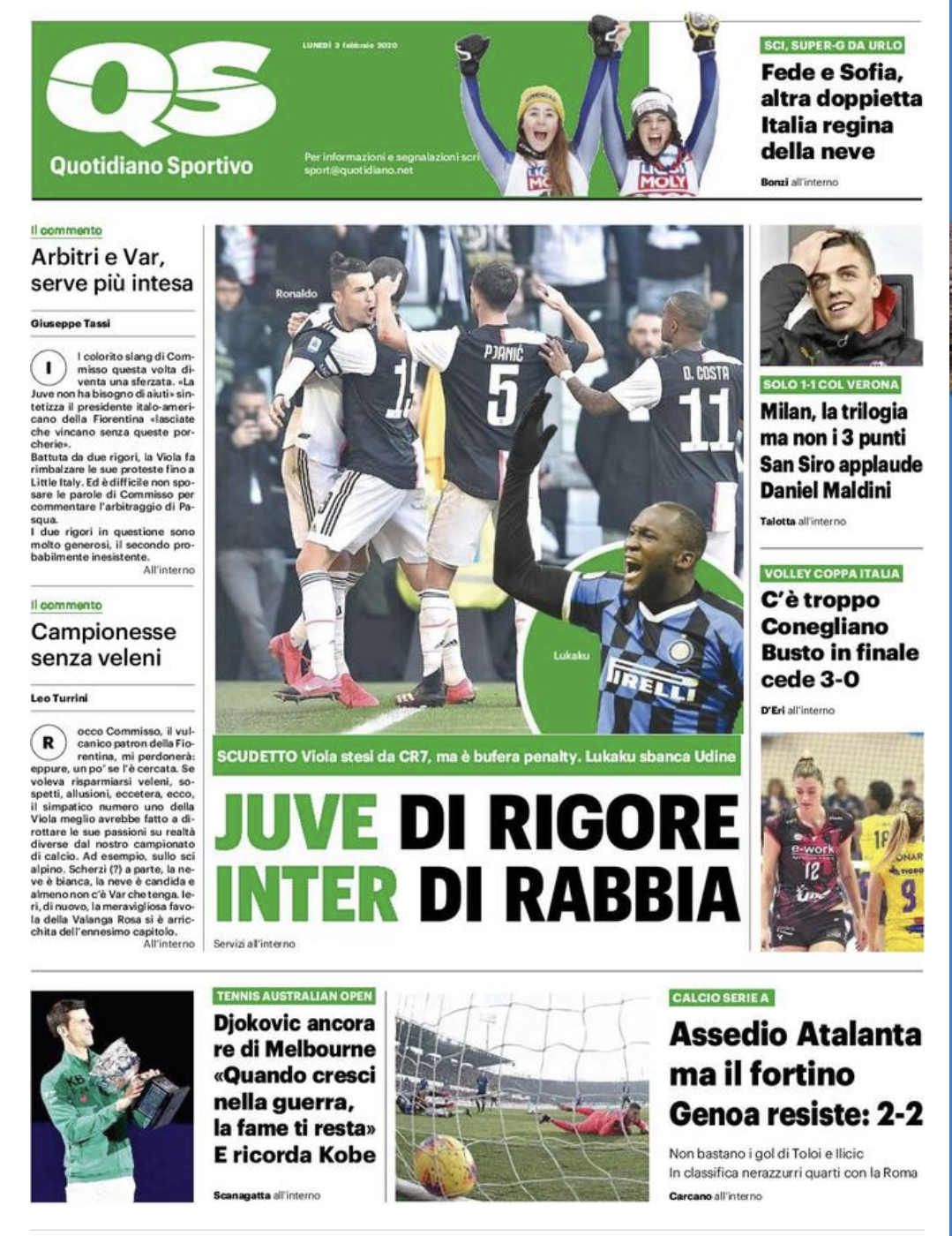"Milan, la triologia ma non i 3 punti: San Siro applaude Daniel Maldini": titola così questa mattina il Quotidiano Sportivo in prima pagina per commentare il pare di ieri del Milan contro il Verona. A San Siro, solo un pari per i rossoneri che però hanno festeggiato l'esordio in Serie A di Daniel Maldini, figlio di Paolo e nipote di Cesare.