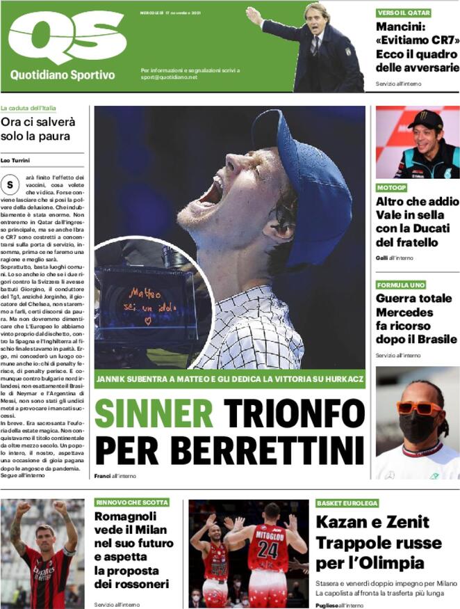 "Romagnoli vede il Milan nel suo futuro e aspetta la proposta dei rossoneri". Così in taglio basso il QS, che si occupa del futuro del centrale rossonero: dopo l'allontanamento degli scorsi mesi, sembra essersi clamorosamente riaperta la trattativa per il rinnovo del difensore, che attende un segnale dal suo club.