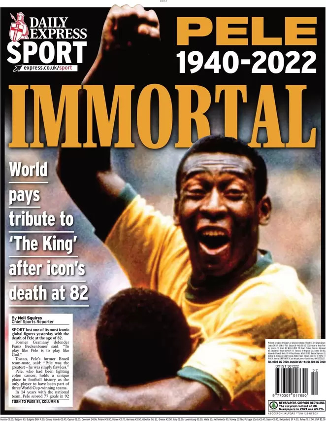 Tutto il mondo celebra Pelé: le prime pagine dei principali quotidiani sportivi internazionali
