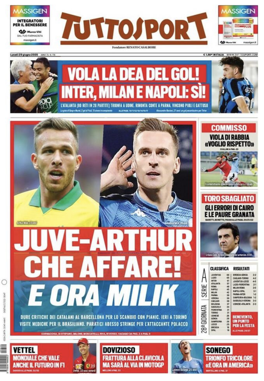 Tuttosport in apertura: "Vola la Dea del gol! Inter, Milan e Napoli: sì!"