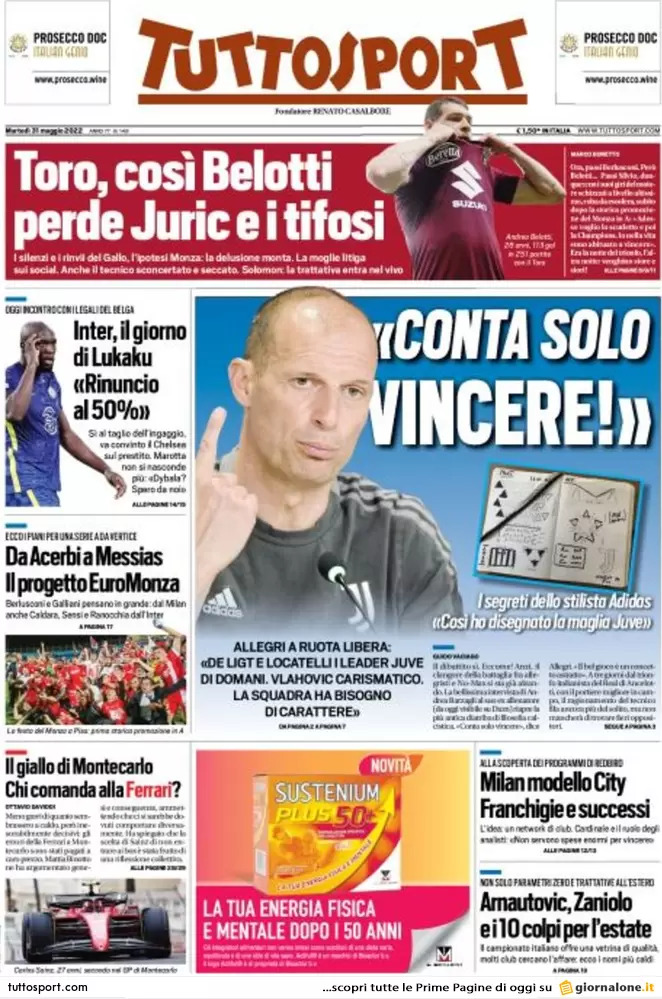 Sulla prima pagina odierna di Tuttosport c'è spazio per l'imminente cambio di proprietà al Milan e sui progetti di RedBird: "Milan modello City. Franchigie e successi". Il fondo americano di Gerry Cardinale, che nelle prossime ore firmerà il signing, cioè il contratto preliminare per l'acquisto del club di via Aldo Rossi, prende come esempio il Manchester City. Il piano è formare franchigie per creare valore e giocatori.