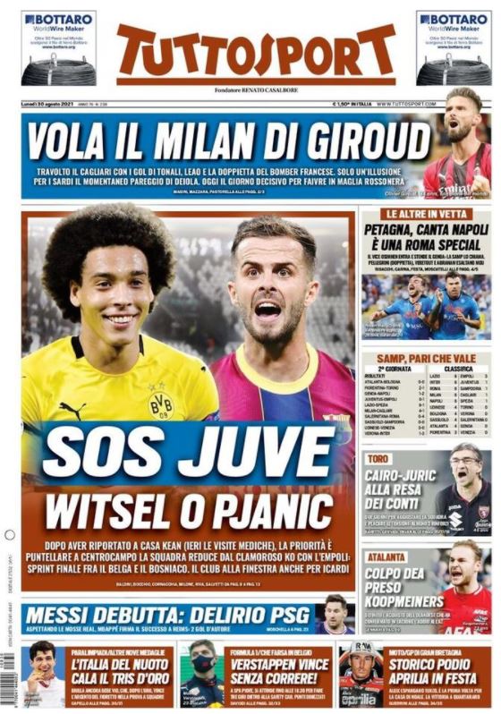 Tuttosport in prima pagina: "Vola il Milan di Giroud"
