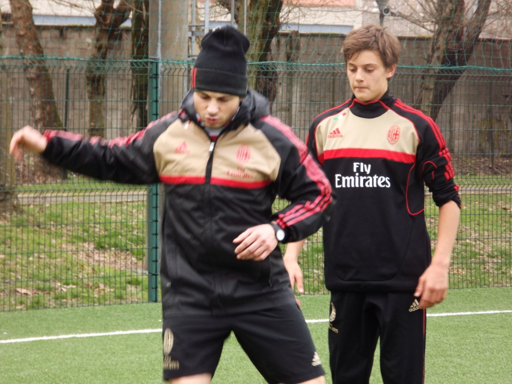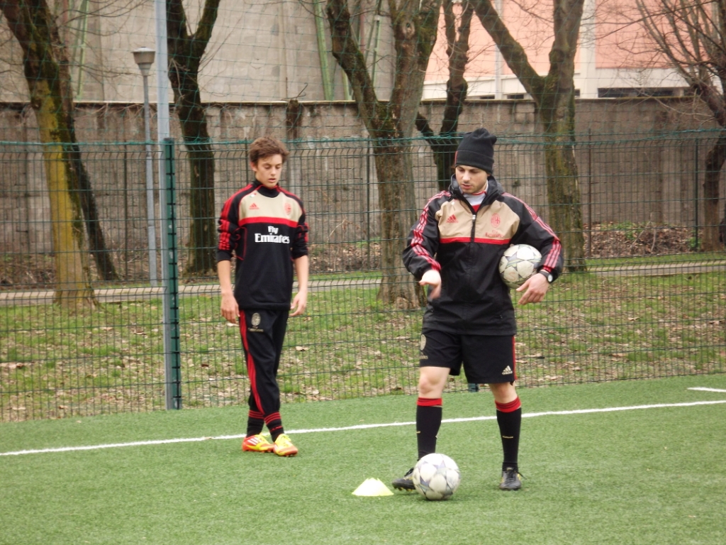 Giornata di lavoro intenso oggi al centro sportivo Vismara di Milano per i Giovanissimi Nazionali di mister Roberto Bertuzzo. In particolare, come si vede nelle istantanee, Andrea Casiraghi, bomber della squadra e nazionale under 15, ha svolto un lavoro specifico con Francesco Sità nell'ambito del programma di "Genarazione Milan".
