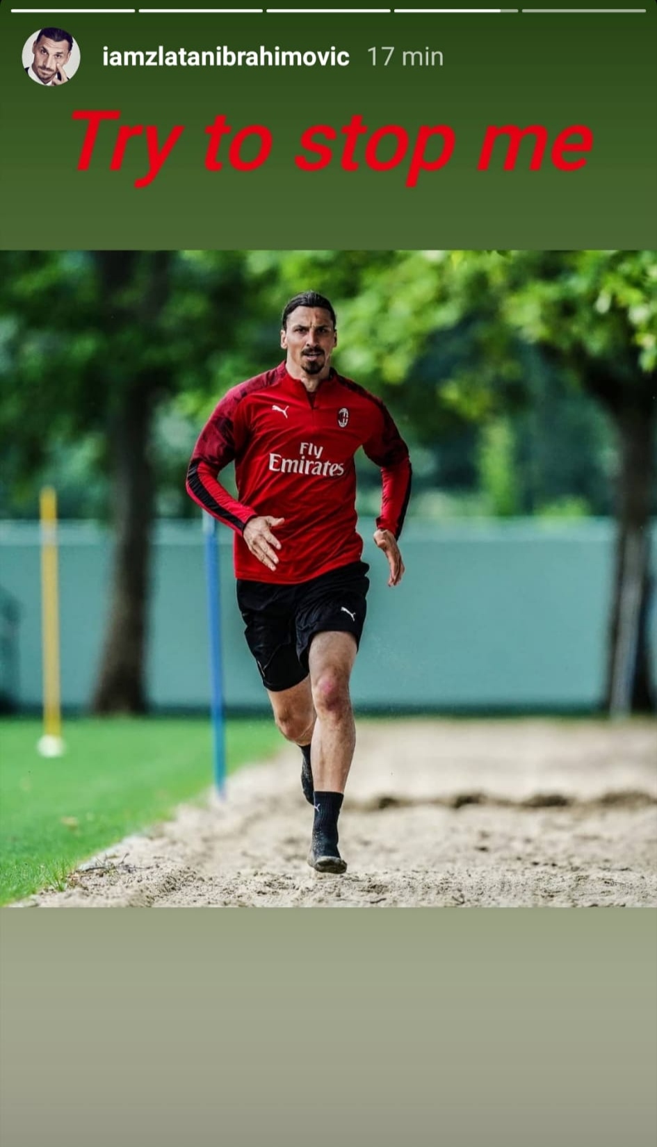 Zlatan Ibrahimovic, intervenuto su Instagram con una story, ha pubblicato una foto che lo ritrae al lavoro a Milanello. Una corsa e un messaggio, forte e chiaro: "Try to stop me". Provate a fermarmi. Lo svedese è già carico in vista della possibile ripresa del campionato.