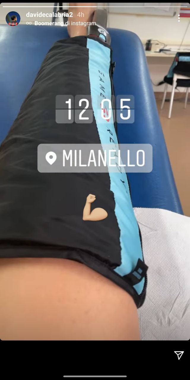 Nei giorni scorsi l'operazione in artroscopia al ginocchio destro riuscita perfettamente, poi subito a Milanello per le terapie per avvicinare sempre di più il ritorno in campo. Davide Calabria sarà indisponibile per circa un mese, ma il terzino rossonero, come già ampiamente dichiarato sui suoi social, farà di tutto per tornare il prima possibile ed aiutare la squadra in questo finale di stagione. Anche oggi si è presentato a Milanello, come dimostra la sua storia su Instagram, per proseguire le cure e le terapie al ginocchio.