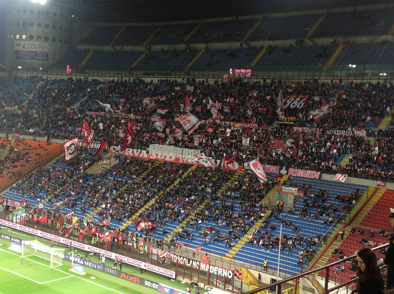 La Curva Sud Milano ha esposto uno striscione dedicato a Massimiliano Allegri poco prima del calcio d'inizio di Milan-Catania: "Più rispetto per il nostro mister Allegri". Il tecnico rossonero è stato vittima di numerose critiche nell'ultimo periodo e la parte più calda del tifo milanista ha voluto così manifestare il proprio supporto all'allenatore livornese.
